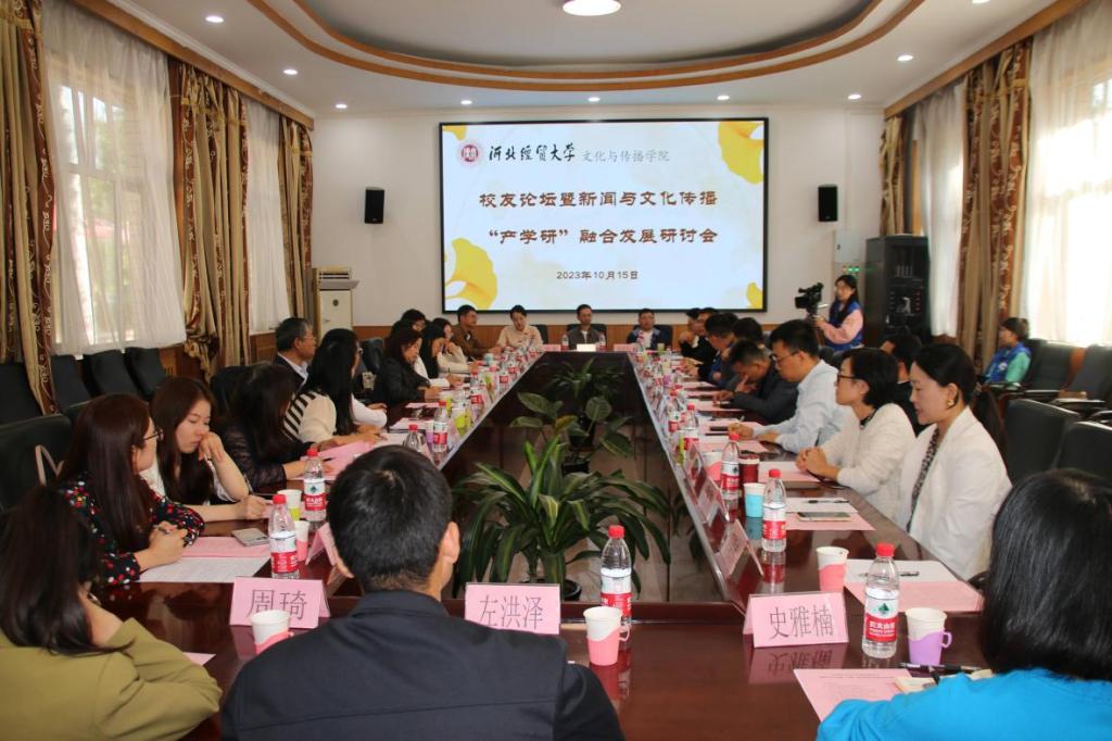 10月15日上午,文化与传播学院在第二会议室举办校友论坛暨新闻与文化传播“产学研”融合发展研讨会,文化与传播学院党委书记蔡金续、院长景义新出席,会议由文化与传播学院副院长田悦芳主持,校友代表、系主任、教师代表等40余人参会。