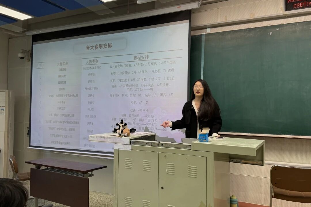 为明晰赛事路径,新闻与文化传播学院团委组织挑战杯参赛学生,于11月18日上午北三教B501教室开展了挑战杯院级赛事专题讲解会。2023级广播电视学1班任鸿翔,前创新创业联盟项目部部长受邀主讲,各位同学在干货满满的分享中点燃创新热情,筑牢参赛根基。